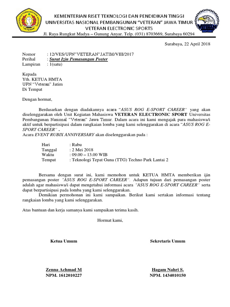 - Surat izin harus diajukan minimal 3 hari sebelum tanggal keberangkatan